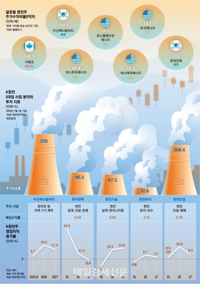 그러나 뉴스케일파워는 적자 기업으로 주가수익비율(PER)이 측정되지 않는다. 콘스텔레이션에너지는 미국 역사상 최악의 원전 사고를 낸 ‘주홍글씨’가 새겨져 있어 불확실성이 크다. 이들 글로벌 원전주와 달리 K원전사는 낮은 단가, 공사기간 및 예산 준수와 함께 안정성 면에서 탁월하다는 평가다. 투자 측면에서도 K원전주를 섞어서 투자하는 것이 투자 위험을 낮추는 길이라는 것이다.