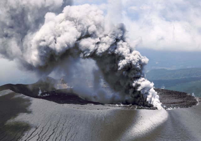 일본 규슈에 있는 활화산인 신모에다케에서 나온 연기가 지난 3일 5000m 상공까지 치솟았다. 사진은 지난달 28일 신모에다케 분화 모습. 연합뉴스 |