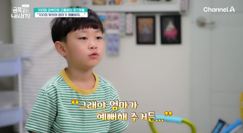 금쪽이는 인터뷰에서 "엄마가 백점만큼 좋다"라며 애정을 드러냈지만 점수 얘기가 나오자 다소 주눅든 모습으로 "100점이 좋다. 엄마 앞에서 100점 맞아야 한다. 엄마가 예뻐해 주거든"이라고 답했다.