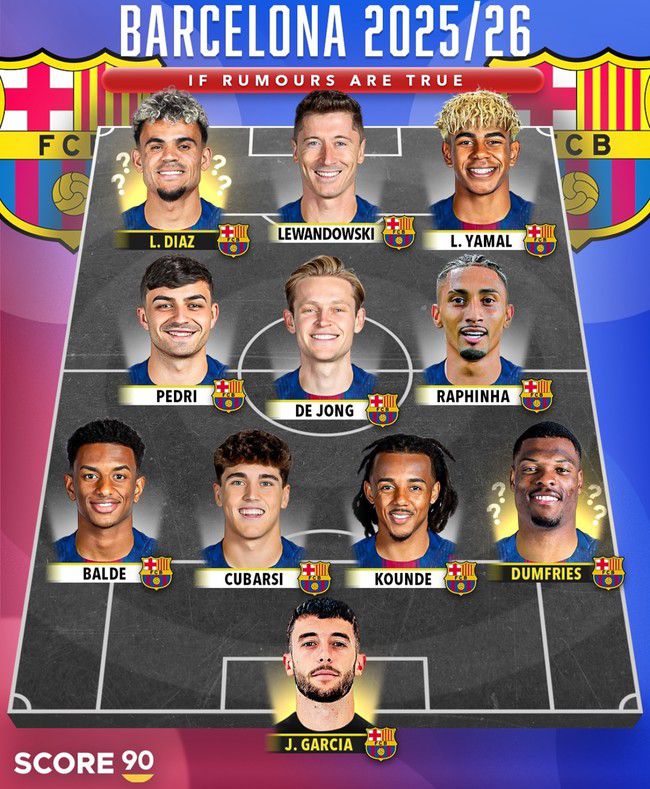 인터밀란을 떠날 수도 있는 덴젤 덤플리스도 타깃이다. 이미 조안 가르시아를 영입해 골키퍼 변화를 시도 중이다. 축구 매체 '스코어90'은 5일 2025-26시즌 바르셀로나 예상 라인업을 내놓았는데 가르시아가 골키퍼였고 수비진은 알레한드로 발데, 파우 쿠바르시, 줄스 쿤데, 덤프리스가 구성했다. 중원엔 페드리, 프렌키 더 용, 하피냐가 위치했다. 공격진은 디아스, 로베르트 레반도프스키, 라민 야말이 구축했다. 윌리엄스 영입 실패 후 바르셀로나 의도대로 이적시장이 진행될 수 있을지 주목된다.