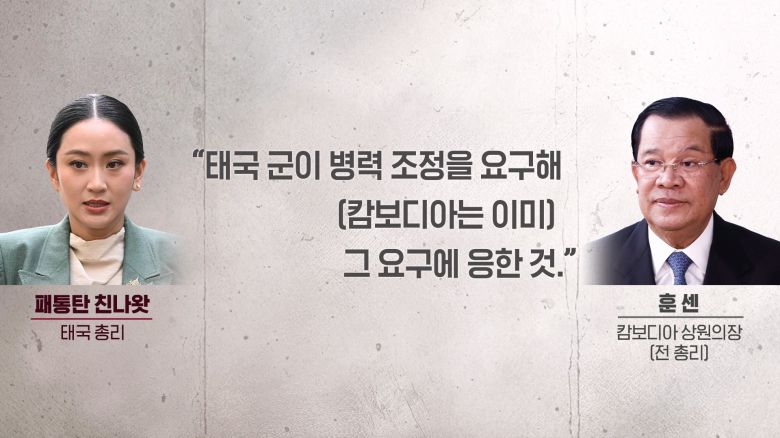 패통탄 총리는 이 상황에서 군부가 압박하고 있다고 인식을 한 걸로 보입니다. 확전이 되기를 원하지 않는 입장이었거든요. 패통탄 총리는 그래서 이제 기자회견에서 앞서도 말씀드렸지만 자신의 발언은 전쟁을 예방하기 위한 것이다, 그래서 우리 군인이 다치는 걸 없도록 하게 하기 위함이었다고 해명을 했거든요. 군부의 강경책에 맞서서 외교적 해결을 모색하려던 시도였음을 보여주기는 합니다.
