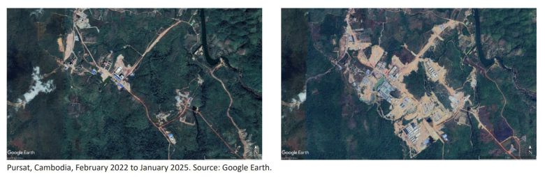 그리고 이와 별개로 캄보디아에서는 온라인 사기의 거점이 되는 곳이 많은 걸로 알려져 있는데 유엔 마약 범죄 사무소에서는 올해 발표한 보고서에 위성 사진을 실었습니다. 온라인 사기의 중심이 되는 캄보디아의 여러 곳들 중 하나인 푸르사트라는 지역에서요. 2022년에서 올해까지 그 온라인 사기에 쓰인 것으로 추정되는 건물과 인프라가 급속도로 확장 중임을 이 위성 사진을 통해서도 보실 수가 있습니다. 하지만 이게 실제로 이 온라인 사기 때문이라고 보기에는 직접적으로 어떤 물론 이제 합리적으로 이런 추정이 가능할 수는 있겠습니다만, 이렇게 단정하기는 어려워 보이지 않나 이렇게 생각을 합니다.