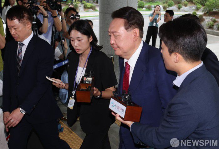 [서울=뉴스핌] 최지환 기자 = 윤석열 전 대통령이 5일 오전 서울 서초구 서울고검 청사에 마련된 '내란 특검' 사무실에 피의자 신분으로 출석하고 있다. 2025.07.05 choipix16@newspim.com