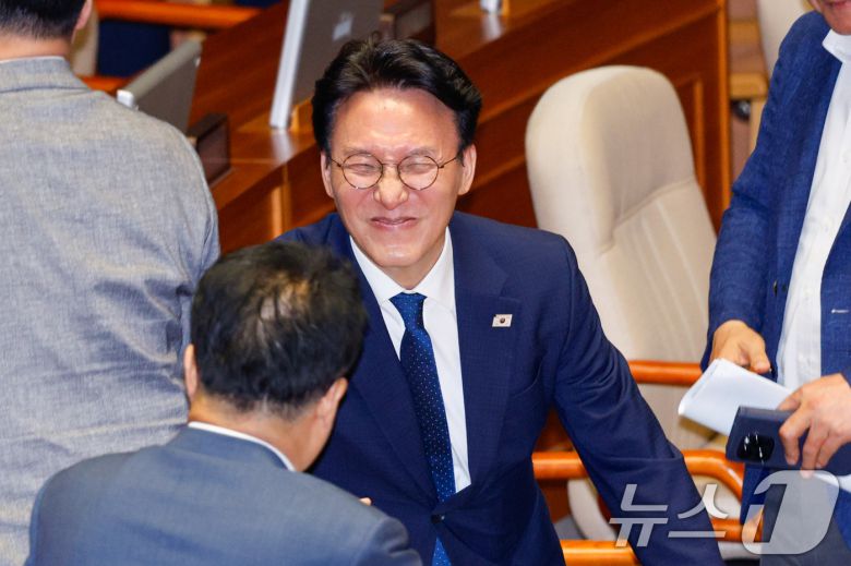김민석 국무총리가 4일 오후 서울 여의도 국회에서 추경안 통과를 위해 열린 제426회국회(임시회) 제5차 본회의가 산회된 뒤 의원들과 인사를 나누고 있다. 2025.7.4/뉴스1 ⓒ News1 안은나 기자 |