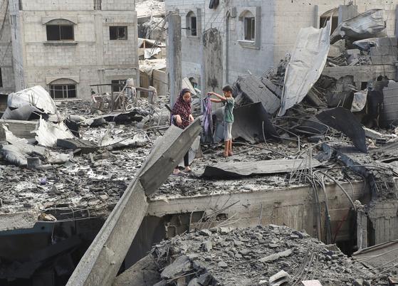이스라엘의 폭격으로 폐허가 된 가자지구의 한 건물. 로이터=연합뉴스