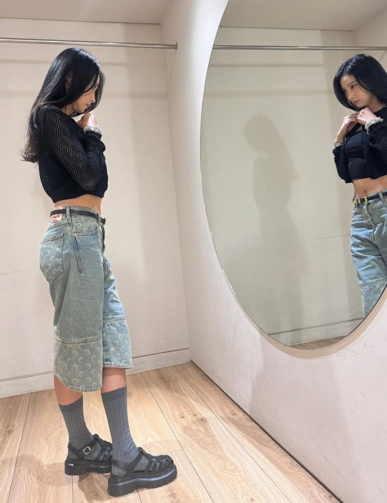 오윤아는 자신의 인스타그램에 "불금"이라는 짧은 멘트와 함께 전신이 담긴 사진 두 장을 업로드했다. 사진 속 오윤아는 블랙 크롭탑과 시스루 가디건, 유니크한 패턴이 들어간 5부 데님 팬츠를 매치해 군살 없는 허리 라인을 드러냈고 니삭스에 버클 슈즈까지 더해 감각적인 룩을 완성했다.