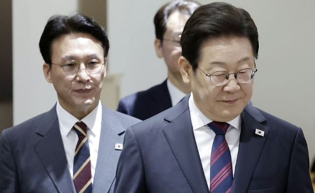 이재명 대통령과 김민석 국무총리가 5일 서울 용산 대통령실 청사에서 열린 국무회의에 입장하고 있다. [사진=대통령실통신사진기자단] |