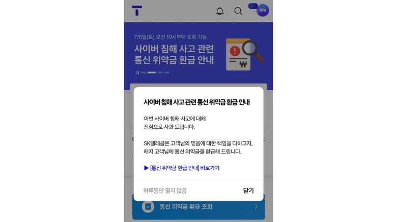 SK텔레콤이 해킹 사태 이후 통신사 변경 가입자에 대한 위약금 면제를 결정한 가운데 환급액 조회 서비스를 시작했습니다.