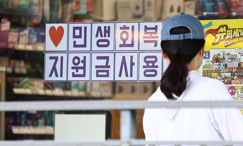 지난 4일 서울 시내 한 편의점에 민생회복 지원금 사용 관련 안내문이 게시돼 있다. 뉴스1