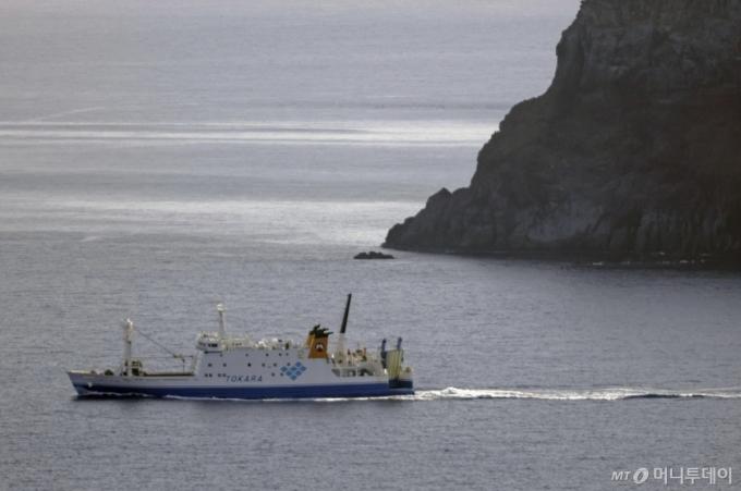지난 6월 21일부터 크고 작은 지진이 1000회가량 이어지고 있는 일본 남부 도카라 열도 지역에서 일시 대피를 원하는 주민과 방문객들을 태운 선박이 4일 아쿠세키섬 도시마촌에서 출항하고 있다. /사진=아쿠세키섬=AP/뉴시스 |