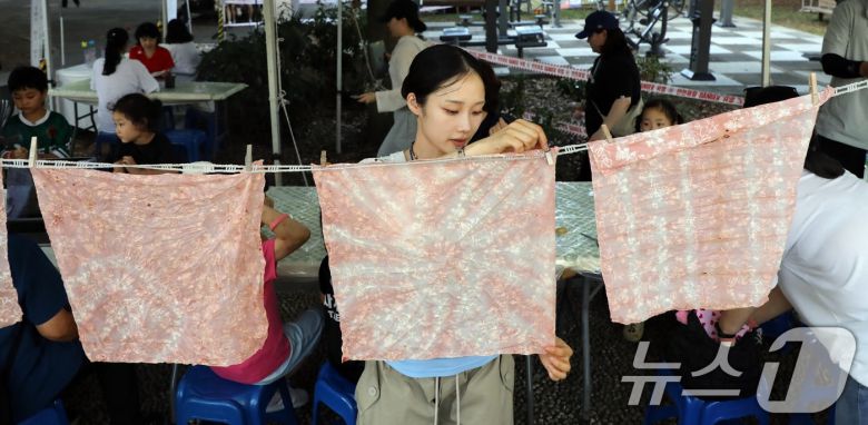 (제주=뉴스1) 고동명 기자 = 5일 오후 제주시 연동 삼다공원에서 제주관광공사가 주관한 삼다콘서트에서 도민과 관광객들이 동백꽃 염색 프로그램을 하고 있다. 2025.7.5/뉴스1kdm@news1.krCopyright ⓒ 뉴스1. All rights reserved. 무단 전재 및 재배포, AI학습 이용 금지.이 기사의 카테고리는 언론사의 분류를 따릅니다.0공유하기