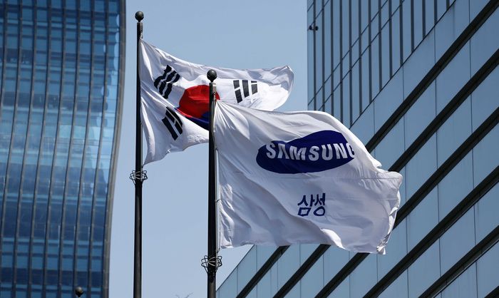 서울 서초구 삼성전자 서초사옥 앞에 깃발이 휘날리고 있다. [김호영 기자]