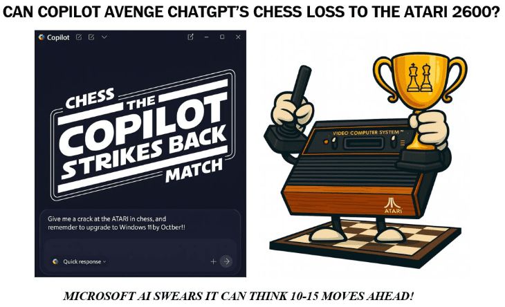 마이크로소프트(MS)의 '코파일럿'이 '챗GPT'에 이어 1970년대 후반 출시된 고전 게임기 '아타리 2600'의 체스 프로그램에 또 패했다. 둘은 똑같이 오픈AI 기술로 작동하지만, 코파일럿이 조금 더 허풍이 셌던 것으로 드러났다.