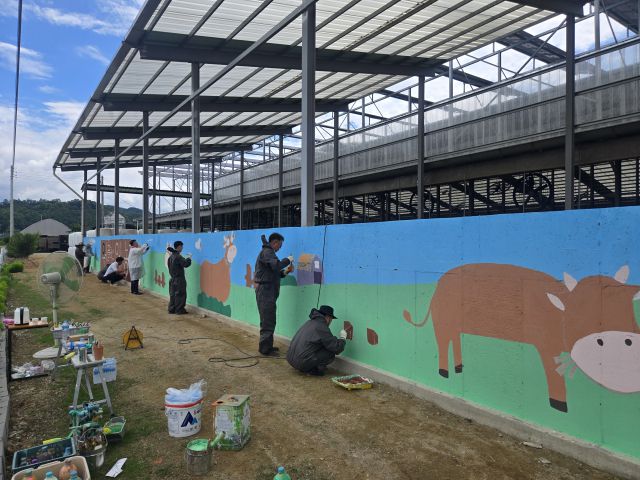 농협강원본부(본부장 김경록)와 홍천축산농협(조합장 강문길)은 2일 홍천 영귀미면 소재 한우농장에서 ‘축산환경개선의 날’ 행사의 일환으로 ‘예쁜 농장, 벽화그리기’를 실시했다.