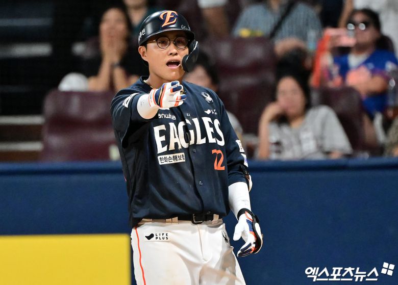 (엑스포츠뉴스 고척, 김한준 기자) 5일 오후 서울 구로구 고척스카이돔에서 열린 '2025 신한 SOL Bank KBO리그' 한화 이글스와 키움 히어로즈의 경기, 8회초 2사 1루 한화 채은성이 투런 홈런을 날리고 있다.