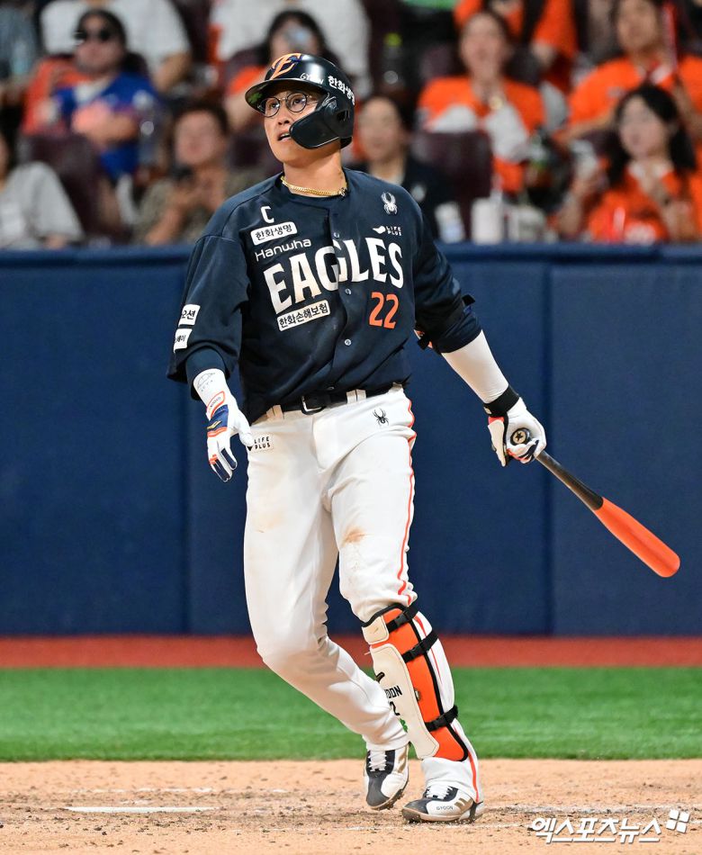 하지만 1위를 달리고 있는 한화의 저력은 무서웠다. 8회초 1사 후 문현빈이 우전 안타로 출루한 뒤 2사 1루에서 캡틴 채은성의 방망이가 불을 뿜었다.