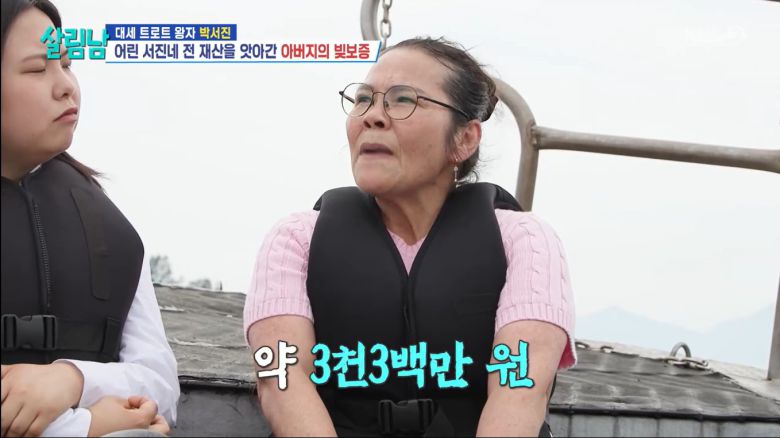 박서진의 어머니는 박서진의 아버지가 빚 보증을 섰으나 지인은 몰래 보증에서 빠져나가며 혼자 독박을 썼던 일화를 이야기 했다. 그러면서 "남의 빚 때문에 우리 재산이 다 넘어간 것, 그때 당시 보증 선 빚이 3300만 원, 그걸 못 갚아서 딱지가 다 붙었다, 새 배를 샀는데 거기도 붙었다"고 말했다. 박서진은 "진짜 빨간 딱지를 붙이더라, 채무자 이름도 생각 난다"라며 그 당시를 회상했다.