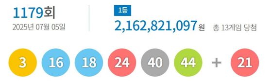 로또복권 운영사 동행복권이 제1179회 로또복권 추첨에서 ‘3, 16, 18, 24, 40, 44’가 1등 당첨번호로 뽑혔다고 5일 밝혔다.