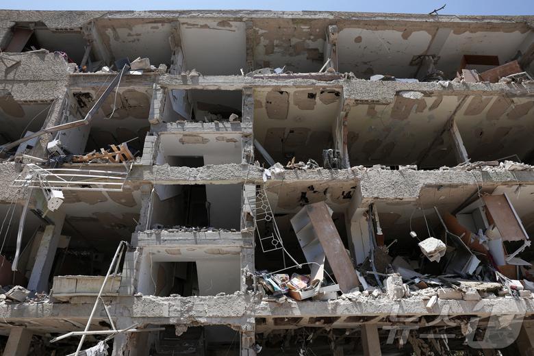 이란의 공격으로 이스라엘 텔아비브에 있는 건물이 타격을 입었다. 2025.6.22 ⓒ 로이터=뉴스1 ⓒ News1 김경민 기자 |