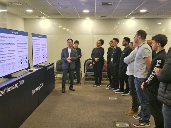 브라질 상파울루에서 지난 달 열린 '2025 중남미 VD 세미나'에서 참석자들이 OLED의 화질 기술을 살펴보고 있다./삼성전자 |