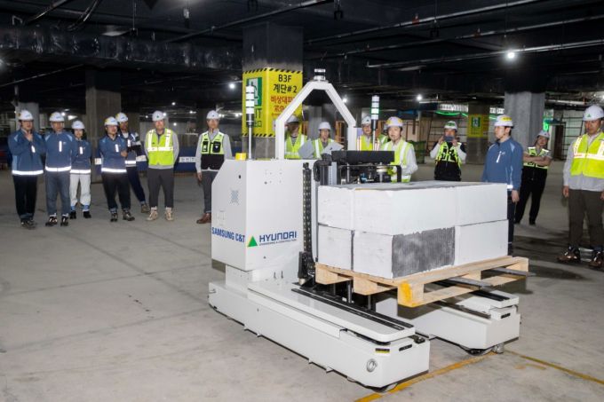 현대건설과 삼성물산 건설부문은 공동으로 연구·개발한 건설 현장 자재 운반 로봇의 현장 시연회를 진행했다고 6일 밝혔다.