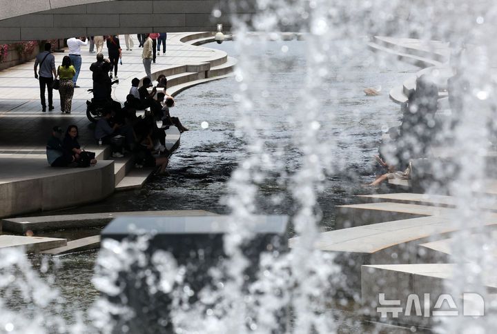 [서울=뉴시스] 배훈식 기자 = 전국 대부분 지역에 폭염특보가 발효된 2일 오후 서울 종로구 청계천을 찾은 시민들이 다리 아래 그늘에서 더위를 식히고 있다. 2025.07.02. dahora83@newsis.com