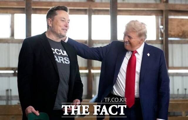 지난해 10월 5일 테슬라와 스페이스엑스의 CEO 엘론 머스크(왼쪽)와 공화당 대선 후보 도널드 트럼프 전 대통령이 펜실베이니아주 버틀러에서 열린 버틀러 팜 쇼에서 열린 캠페인 행사에 참석하고 있다. /AP.뉴시스 |