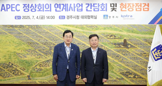 이날 강 사장은 주낙영 경주시장과 만나 APEC 연계 경제행사의 성공적 개최 방안을 논의했다. 코트라는 APEC 정상회의와 연계해 하반기 중 경주에서 △한-APEC 비즈니스 파트너십(9월 24∼25일) △APEC 회원국 및 경북 투자포럼(10월 16∼17일) △APEC 경제전시장 내 첨단미래산업관(10∼11월 중) 등 3개 행사를 개최한다.