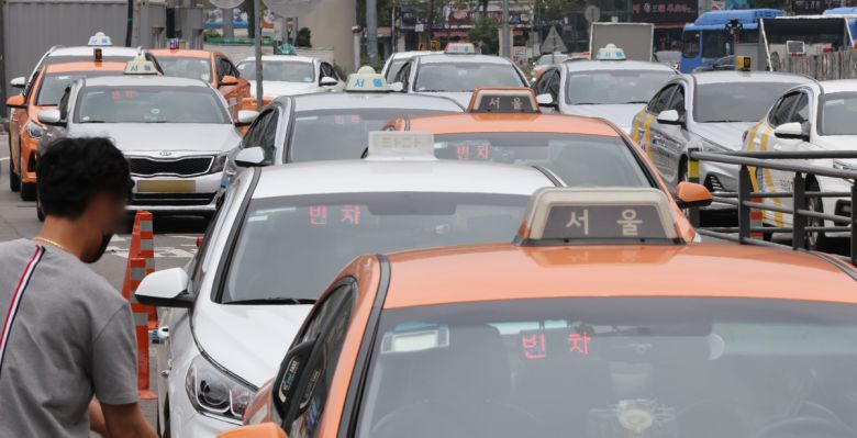 서울역에서 승객을 태우기 위해 대기 중인 택시 모습. |