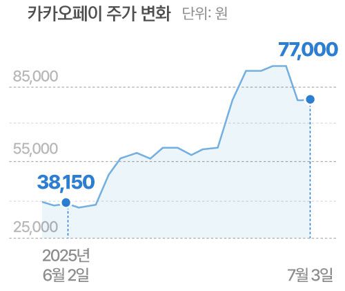 스테이블 코인은 가상자산의 한 종류인데요. 얼마 전부터 스테이블 코인과 관련 있는 회사들의 주가가 급등세를 보였어요. 새 정부가 스테이블 코인 도입을 추진 중이기 때문이에요. 새로운 제도와 시장이 생기는 만큼, 투자자들이 유망한 투자처로 여기고 있는 거예요. 대표적인 기업인 카카오페이의 주가는 6월 이후 두 배가량 상승했을 정도예요.