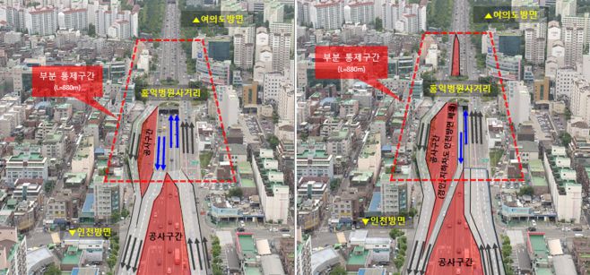 아시아투데이 이수일 기자 = 서울시는 경인1지하차도 홍익병원사거리를 내년 4월부터 지상부 평면교차로로 전환하기 위해오는 9일 오전 9시부터 기존 4차로에서 2차로로 축소한다고 6일 밝혔다.