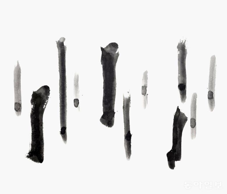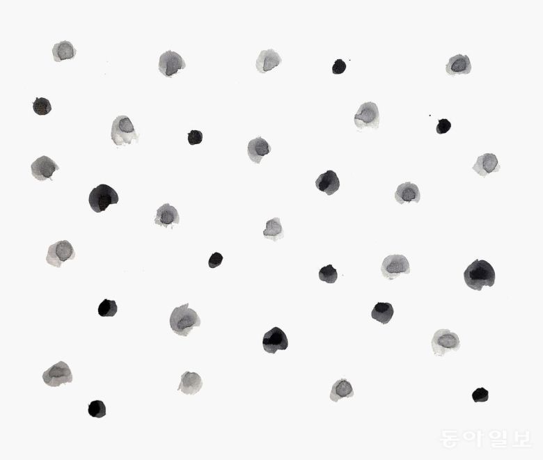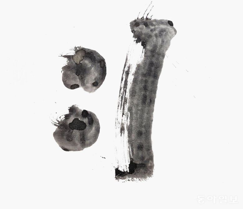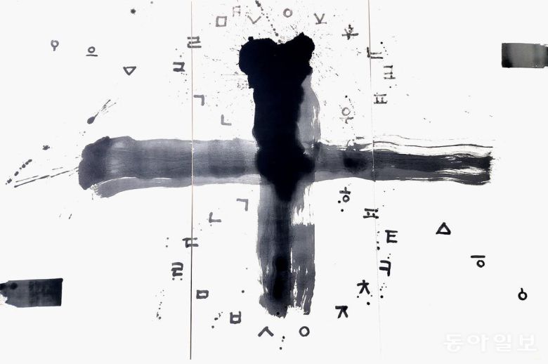 ‘나랏말글씨’ 전시회에서 또하나의 감상할 만한 부분은 바로 먹색입니다. 탁한 먹색이 없습니다. ‘먹=검정색’이라고 알고 있는 고정관념을 깹니다. 맑은 담묵(淡墨), 짙은 농묵(濃墨), 갈아서 하룻밤을 묵힌 ‘숙묵(宿墨)’까지…. 다양한 발묵(潑墨)을 보여줍니다. 김 작가는 “진정한 검정은 검정 속에 있는 하얀색을 찾아내는 것”이라고 말합니다.