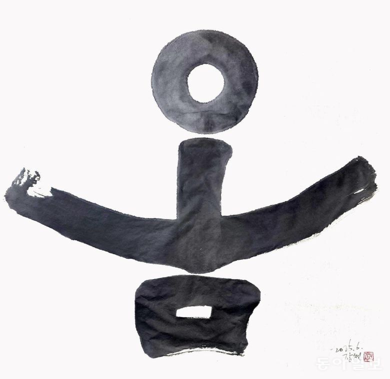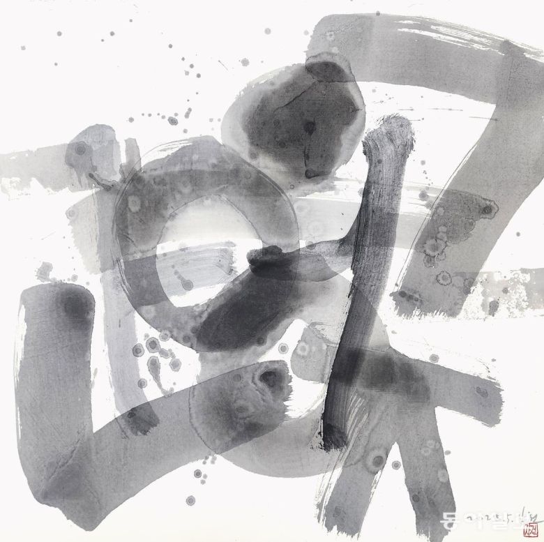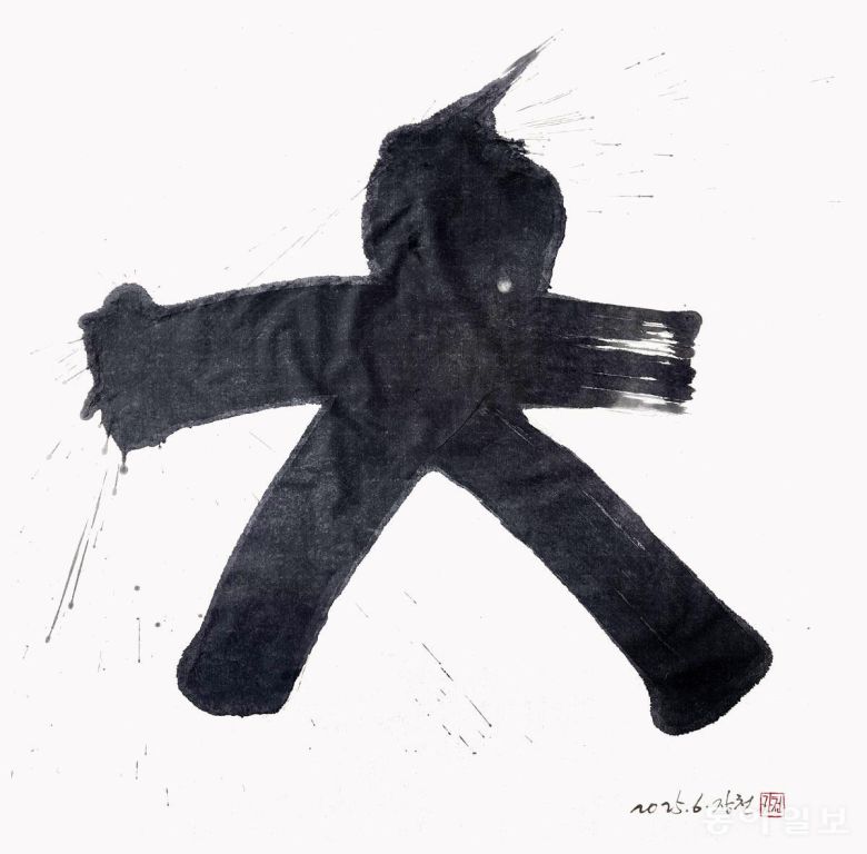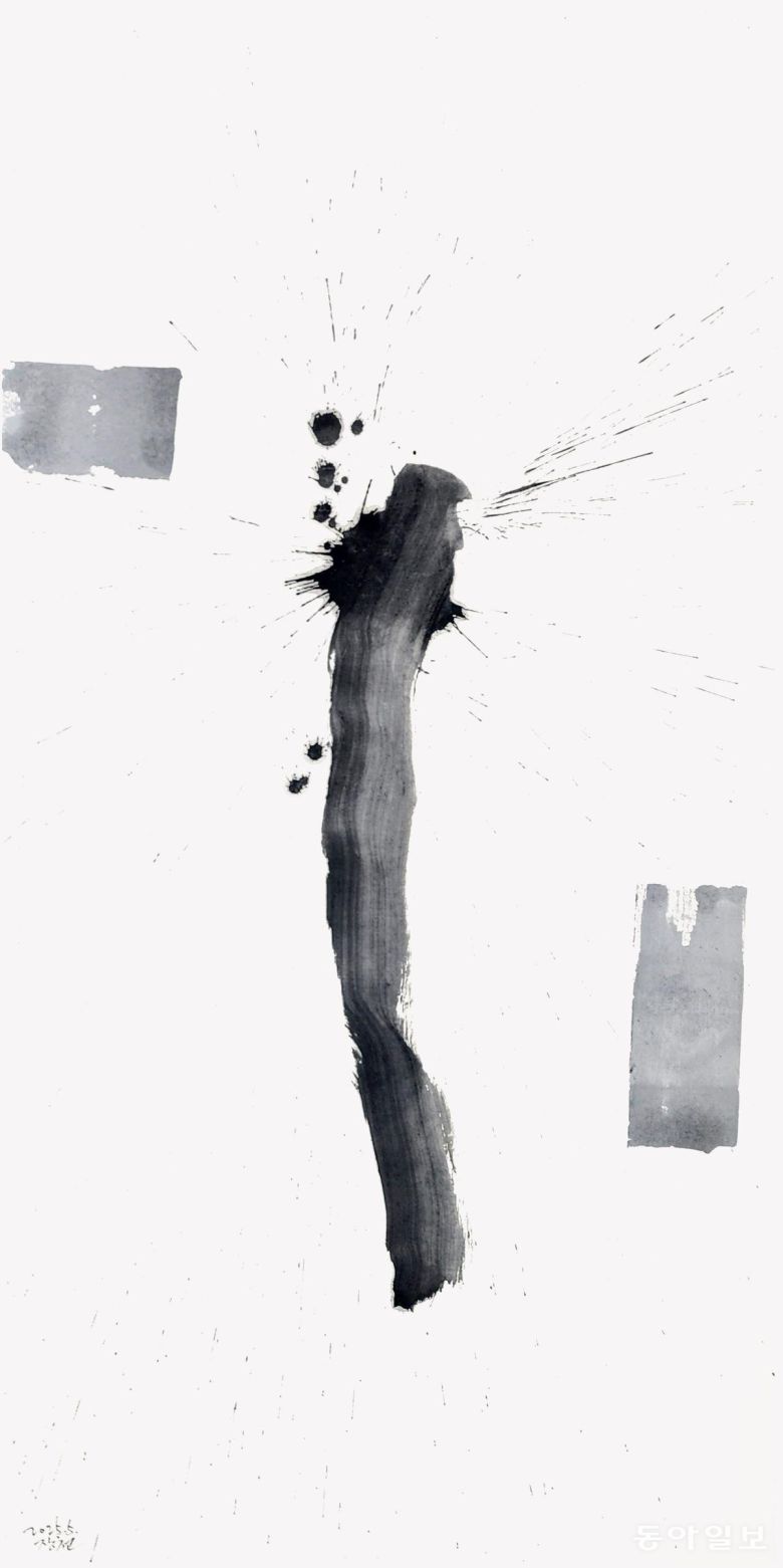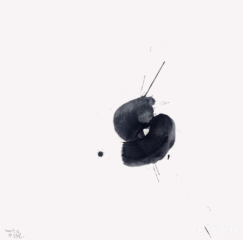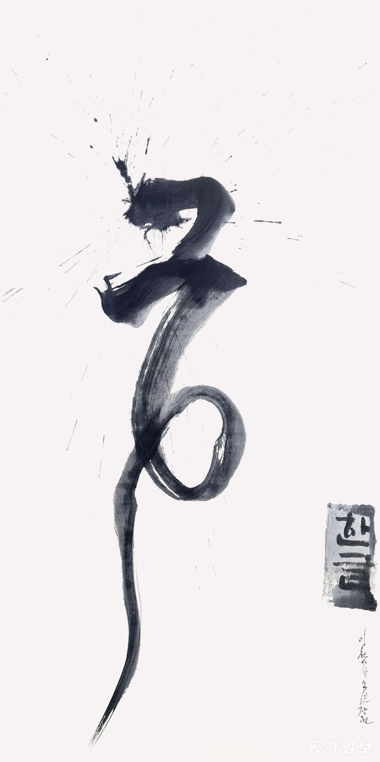 ‘문장의 시냇물(글내)’이라는 뜻의 ‘장천(章川)’이라는 호처럼 아름다운 글귀를 써온 그의 작품에서 문장이 사라졌습니다. 대신 글씨 하나하나가 문자조형 예술작품이 됐습니다. 글씨인지, 그림인지 알 수 없는 작품이지만, 여전히 살아 꿈틀거리는 서체의 힘에 한없이 빨려들어가게 됩니다.