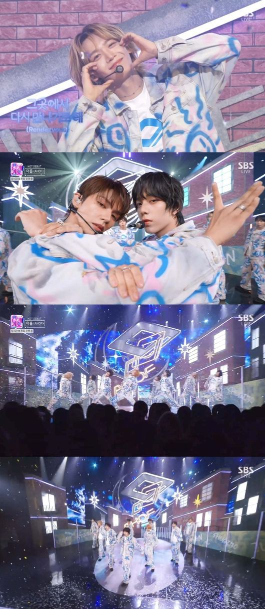 아홉(AHOF·스티븐, 서정우, 차웅기, 장슈아이보, 박한, 제이엘, 박주원, 즈언, 다이스케)은 6일 오후 방송된 SBS '인기가요'에 출연해 첫 번째 미니앨범 'WHO WE ARE(후 위 아)'의 타이틀곡 '그곳에서 다시 만나기로 해 (Rendezvous)' 무대를 펼쳤다.