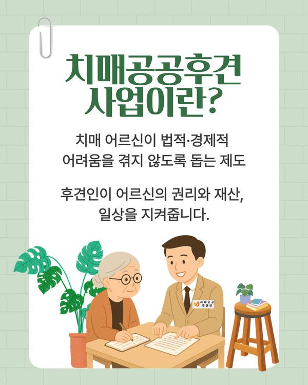 최근 사회적으로 '치매머니' 문제가 대두되면서 치매 환자가 본인 재산을 관리하지 못해 가족 간 갈등, 금융사기, 재산 유용 등 다양한 피해 사례가 증가하고 있다. 이에 대응하는 제도적 장치로 주목받는 것이 바로 치매 공공후견제도다.