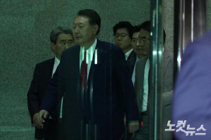 윤석열 전 대통령이 5일 서울 서초구 서울고검 청사에 마련된 내란특검에서 2차 소환 조사를 마친 뒤 귀가하고 있다. 박종민 기자 |
