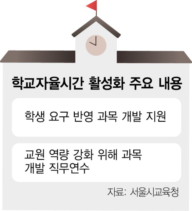 6일 교육계에 따르면 서울시교육청은 지역과 학교 여건과 학생의 요구를 반영한 과목 개발을 적극 지원하고, 교원의 교육과정 설계 역량을 강화하기 위해 ‘학교자율시간’을 7월부터 본격 활성화한다