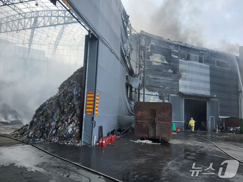 (화성=뉴스1) 배수아 기자 = 6일 오전 9시 21분쯤 경기 화성시 서신면의 한 자원 순환시설에서 난 불이 6시간 30여분 만인 오후 3시45분쯤 완전히 꺼졌다.