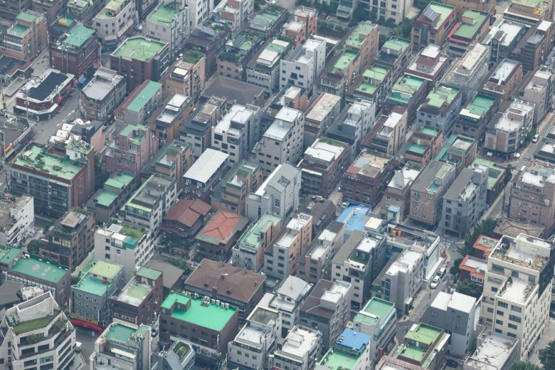 6일 서울 송파구 롯데월드타워 전망대에서 바라본 서울 시내 빌라 단지의 모습. 연합뉴스