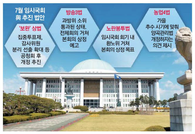 노란봉투법·농업4법 …'7월 국회' 지뢰밭