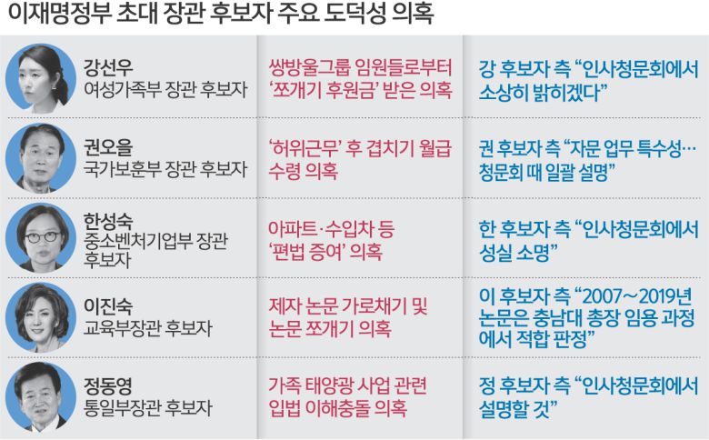이미 장관 후보자들에 대한 각종 의혹이 언론 보도 등을 통해 터져 나오고 있다.