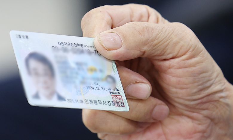 인천 남동구 도로교통공단 인천운전면허시험장에서 한 어르신이 고령운전자 교통안전교육을 받기 전 운전면허증을 확인하고 있다. 연합뉴스 |