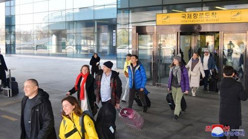 알렉세이 스타리치코프 연해변강정부 국제협조국 국장을 단장으로 하는 러시아 제1차 관광단이 지난 2024년 2월 9일 평양에 도착했다고 북한 조선중앙통신이 10일 보도했다. [사진 출처 = 평양 조선중앙통신, 연합뉴스] |