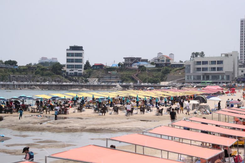 해수욕장을 찾은 피서객들은 파라솔 그늘에 앉아 바닷바람을 쐬며 더위를 식혔고, 수상레저를 즐기기도 했다.