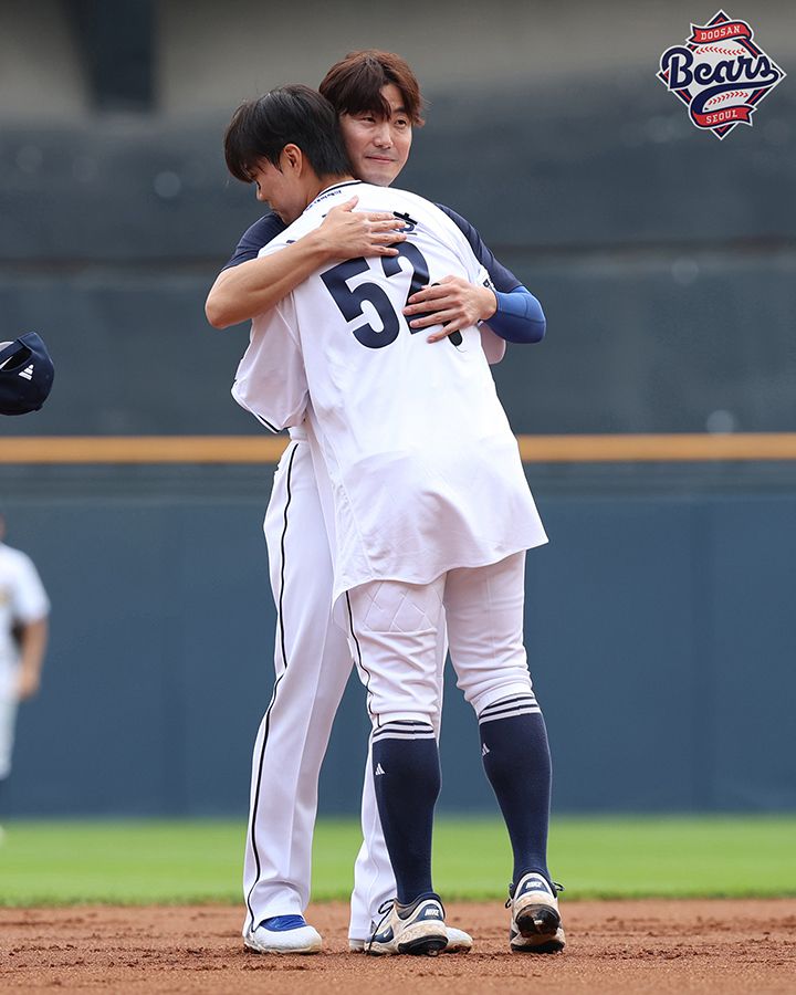 올해 입단한 신인 선수 박준순은 김재호가 사용한 52번의 새로운 주인이 됐는데, 이날 그 특별한 유니폼 교환 세리머니가 펼쳐졌다.