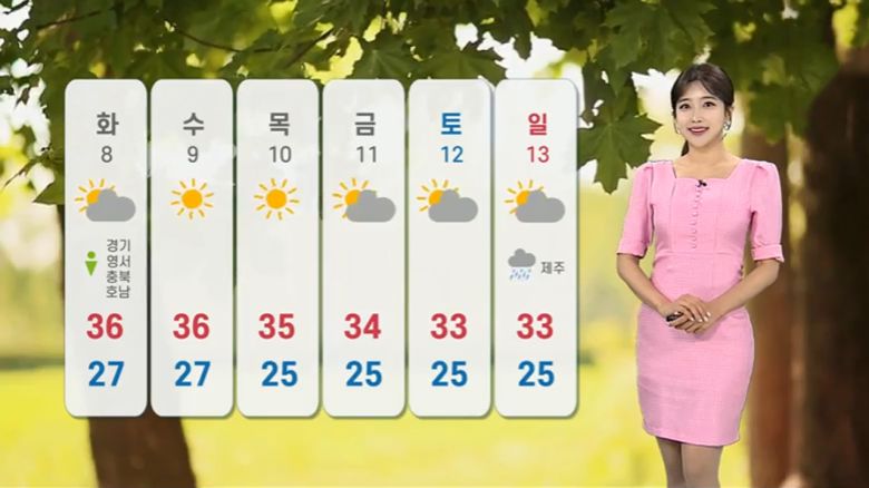 한낮에는 서울 32도, 광주 35도, 대구 37도까지 오르겠습니다.