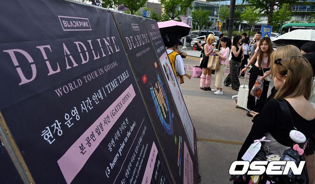 공연장을 찾은 팬들이 안내문을 확인하고 있다. 2025.07.06 /cej@osen.co.kr
