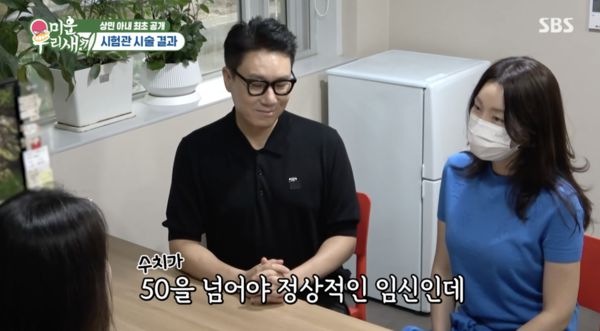 임신 결과를 확인하기 위해 병원에 들어선 두 사람. 담당의는 “(아내) 난소 나이가 40세가 나왔다. 이 나이에도 성공하는 분들이 있으니까 해볼만하다고 생각했다”라고 밝혔다.