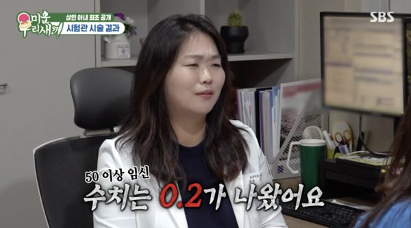 전문의는 "배아가 2개 들어가니 시험관의 경우 쌍둥이 가능성이 5배에서 10배까지 높아질 수 있다"라고 말하기도 했다. 이날 담당의는 “피검사 결과가 나왔는데, 수치는 0.2가 나왔어요. 아쉽지만 이번 시도는 임신이 아니다”라는 결과를 전했다.