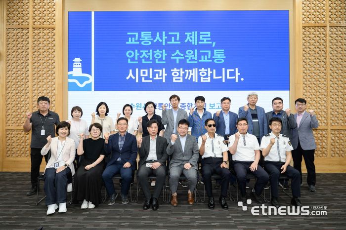 수원시가 최근 시청 중회의실에서 '수원시 교통안전 종합계획(2025~2027년)' 보고회를 열고 기념 촬영했다. |